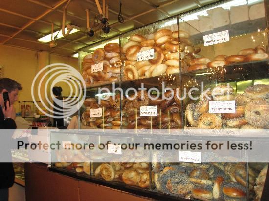 เป็นขนมปังของชาวยิว มีความอร่อยในตัวเองต่างกับขนมปังทั่วไปสามารถเอามาทำแซนวิชได้ ขนมปังจะแข็งกว่าขนมปังธรรมดาและเหนียวอร่อย มีรสในตัว เช่นลูกเกด เมล็ดป็อบปี้ หรือมีงารอบๆ ต้องทานตอนอุ่นๆ จะเหนียวหอม ต่างกับขนมปังธรรมดาที่นู่นเขาจะผ่าครี่ง เอาเข้าเครี่องอบให้กรอบ แล้วทาด้วยครีมชีส และที่คนนิยมก็คือทาด้วยlox (cured salmon) ใหม่ๆ ก็ไม่เข้าใจ เขาเรียกล็อค พอเห็นถึงรู้ว่าทำด้วยปลาเซลมอนบดใส่พวกหอมใหญ่ พริกไทย บดผสมกัน เอามาทาเบเกิลก็อร่อยดีก็เป็นอาหารเช้าที่ขายเป็นชุดกับกาแฟเชัาๆร้านพวกนีก็จะมีคนเข้าแถวรอซื้อกันแน่นเหมือนกัน ใน supermarketก็มีขายนะคะ เป็นแถวๆเหมือนขนมปัง อิ่มนานเลยทีเดียว